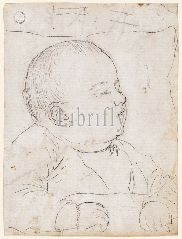 Sleeping child, pen, black, preliminary drawing, graphite pencil, Sheet, 14 x 10.5 cm, marked, Hans Hug Kluber, Basel 1535/36–1578 Basel