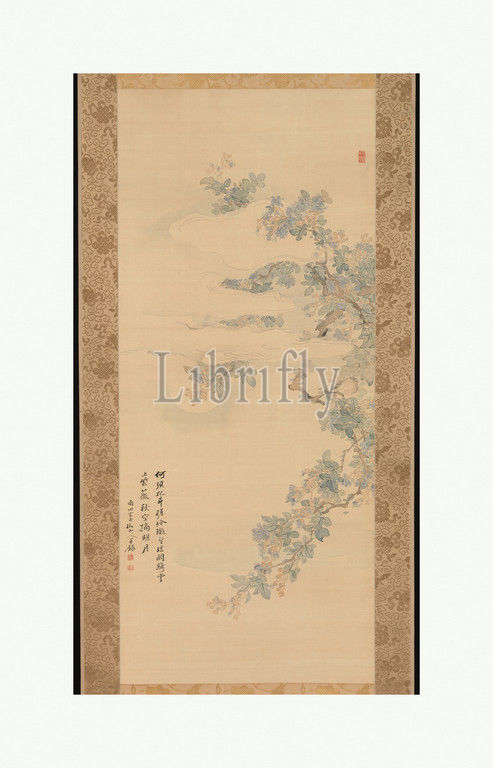 Small Bird, Crepe Myrtle Branch, Edo period, 1615–1868, 19th century, Japan, Hanging scroll, ink, color, silk, 43 15/16 x 18 7/8, 111.6 48 cm, Paintings, Tsubaki Chinzan, Japanese, 1801–1854, time, ukiyo-e tradition, emphasizing scenes, contemporary life, urban world, nanga, southern pictures, inspired, Chinese painting, Ming, Qing dynasties, offered, retreat, unhurried nature, art
