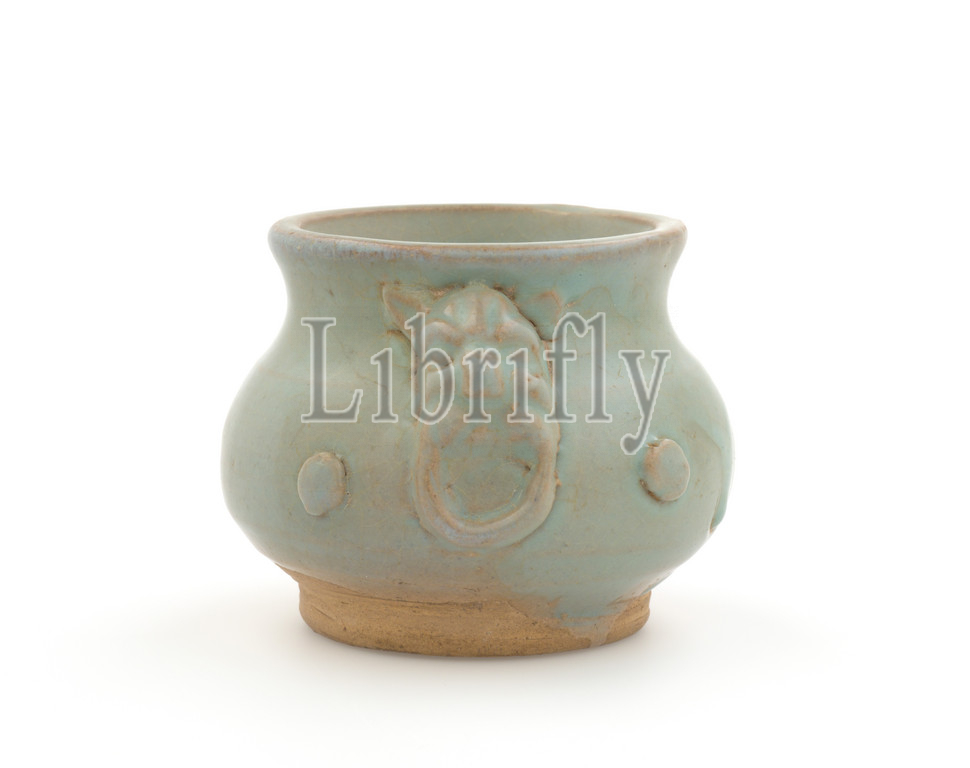 small censer, two appliqué masks, 4 bosses, Song dynasty, 10th-13th centuries, glazed stoneware, 2.5 x 4 x 4, Asian Art