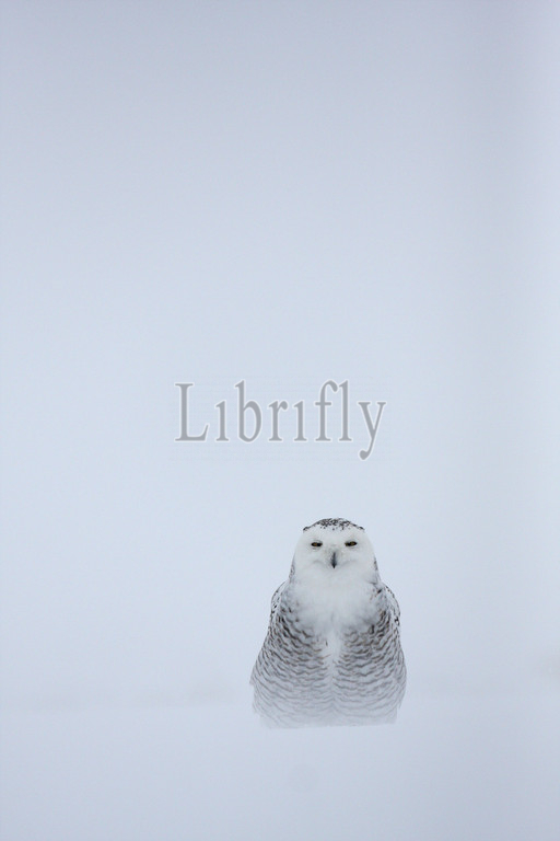 Snowy Owl perched in snow, Bubo scandiacus