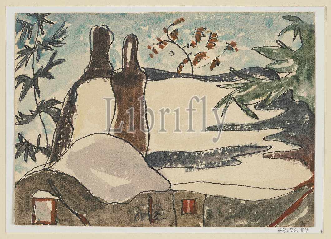 Snowy Rooftops, Trees, ca, 1935, Watercolor, ink, paper, 5 x 7, 12.7 17.8 cm, Drawings, Arthur Dove, American, Canandaigua, New York, 1880–1946, Huntington