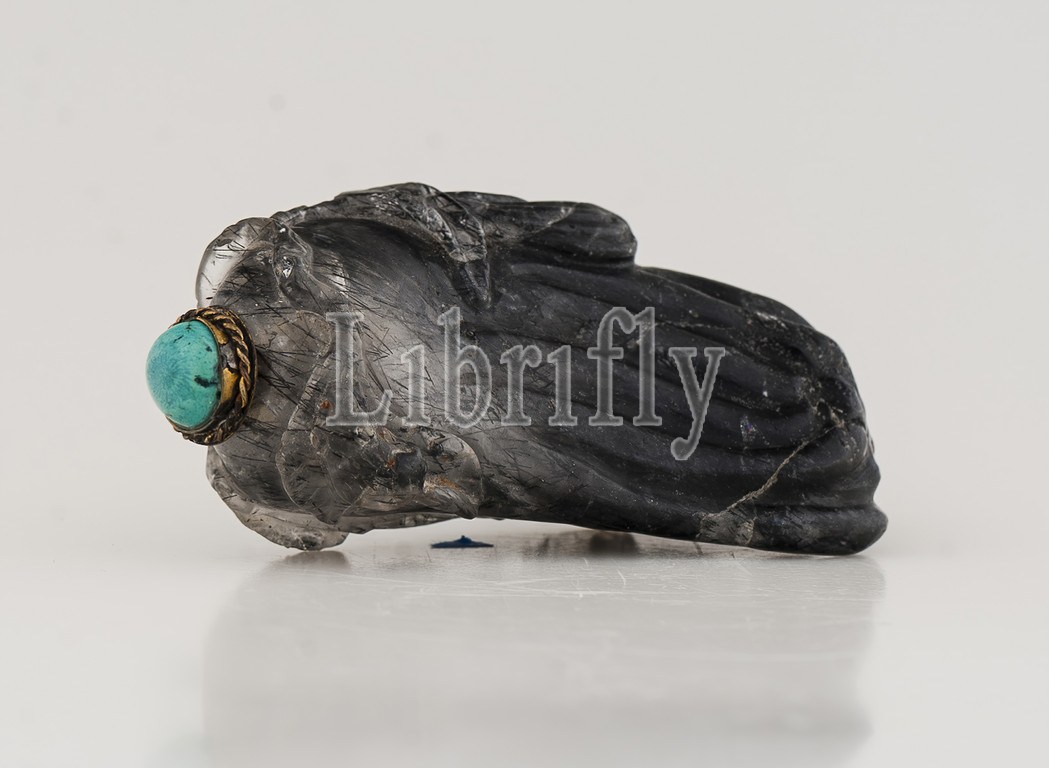snuff bottle, shape, hand-citron, late 19th century, gray quartz, turquoise top, 2-7/8 x 1-1/2 x 1, installed, A, scoop, 1-1/2 x 3/8, diam., B, bottle, 2-5/8 x 1-1/2 x 1, Asian Art