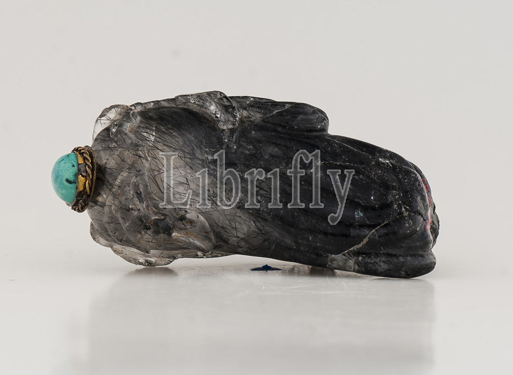 snuff bottle, shape, hand-citron, late 19th century, gray quartz, turquoise top, 2-7/8 x 1-1/2 x 1, installed, A, scoop, 1-1/2 x 3/8, diam., B, bottle, 2-5/8 x 1-1/2 x 1, Asian Art