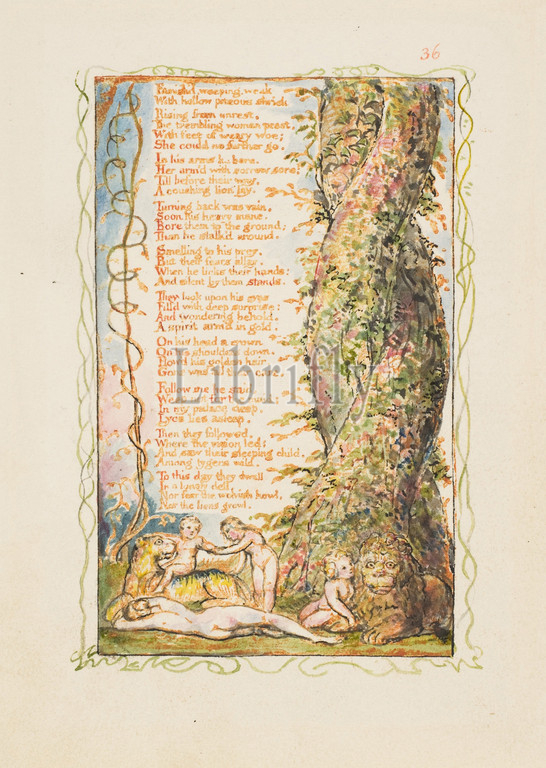 Songs of Innocence and of Experience: The Little Girl Found (second plate), ca. 1825, Relief etching printed in orange-brown ink and hand-colored with watercolor and gold, sheet: 6 3/16 x 5 9/16 in. (15.7 x 14.1 cm), Prints, William Blake (British, London 1757–1827 London)