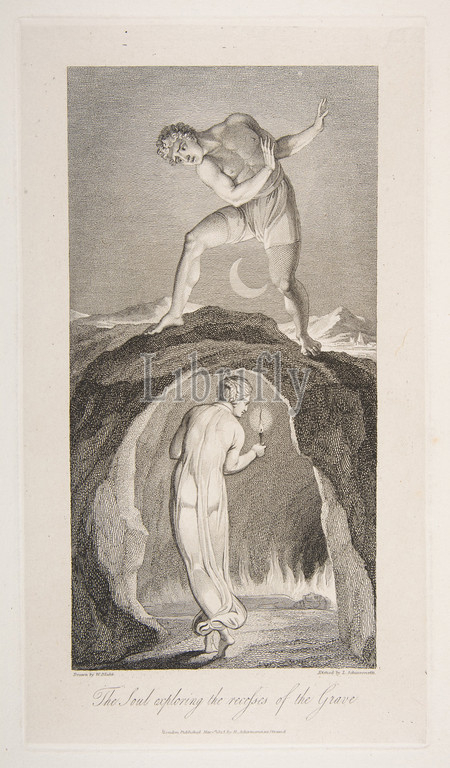 Soul Exploring, Recesses, Grave, Poem, Robert Blair, March 1, 1813, Engraving, plate, 9 1/4 x 4 11/16, 23.5 11.9 cm, Prints, Luigi Schiavonetti, Italian, Bassano del Grappa, 1765–1810, London, After William Blake, British, 1757–1827