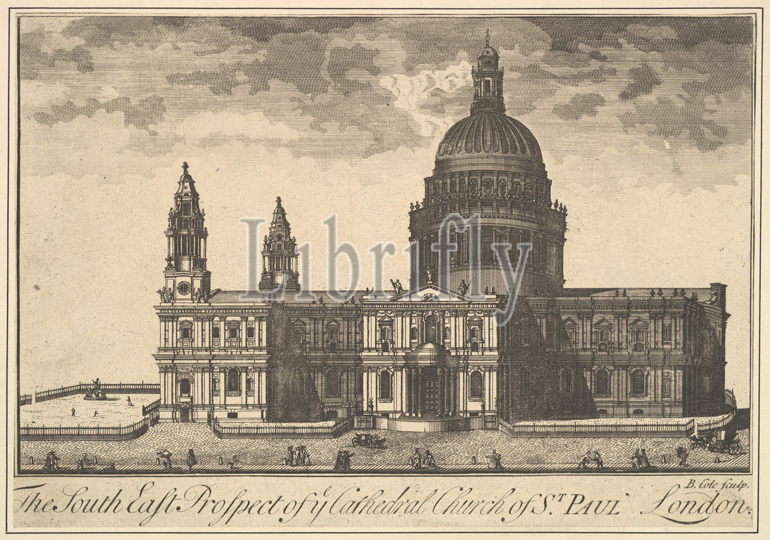 The South East Prospect of the Cathedral Church of St. Paul, London (Overton's Prospects), 1720–30, Etching and engraving, sheet: 6 1/4 x 9 in. (15.8 x 22.8 cm), Benjamin Cole (British, active ca. 1720–75, died 1783)