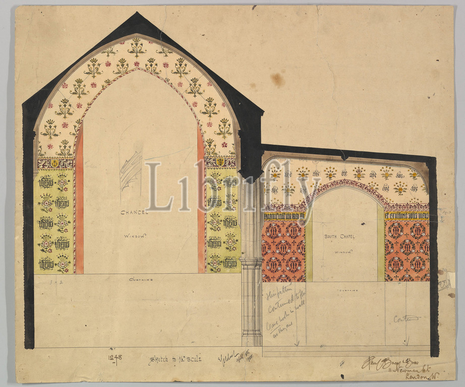 Southern Elevation, church, 1900, Graphite, pen, ink, watercolor, sheet, 18 x 21, 45.7 53.3 cm, Ernest Geldart, British, London, 1848–1929