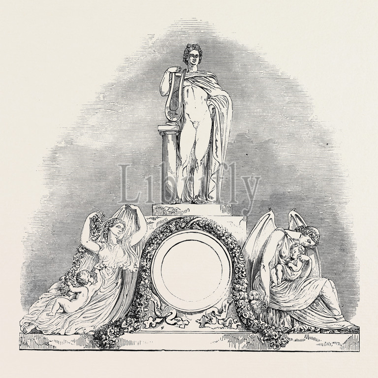 southern wing, sculpture, front, buckingham, royal/official residence, castle, chateau, mansion, stately home, schloss, palace, 1850 engraving, engraved image, history, illustrative technique, engravement, victorian, arts, culture, retro styled, vintage, retro, arkheia