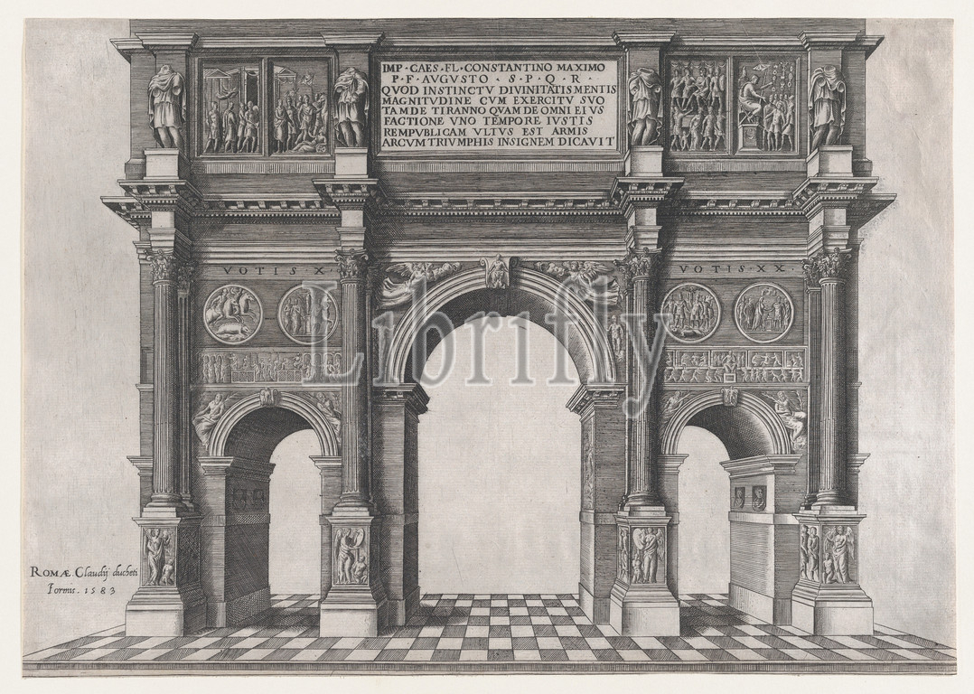 Speculum Romanae Magnificentiae, Arch, Constantine, 1583, Engraving, etching, sheet, 11 5/8 x 16 5/16, 29.5 41.5 cm, Prints, Anonymous