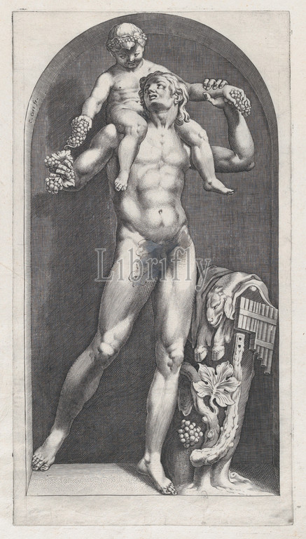 Speculum Romanae Magnificentiae, Bacchus, Shoulders, Satyr, 16th century, Engraving, sheet, 18 1/8 x 12, 46 30.5 cm, Prints, Cornelis Cort, Netherlandish, Hoorn ca., 1533–1578, Rome