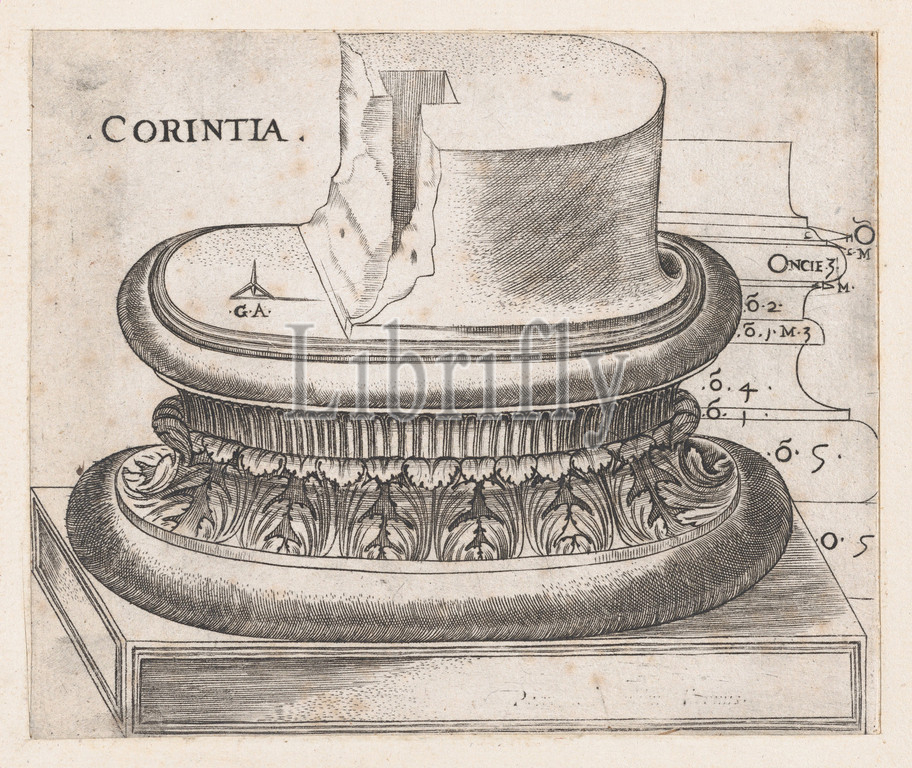 Speculum Romanae Magnificentiae, Corinthian base, ca, 1537, Engraving, sheet, 5 1/8 x 6 1/8, 13 15.5 cm, Prints, Master G.A., Italian, active ca., 1535