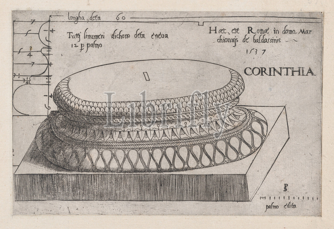 Speculum Romanae Magnificentiae, Corinthian base, 1537, Engraving, sheet, 4 3/16 x 6 5/16, 10.6 16 cm, Prints, Master PS, Italian or French, active, 1530s