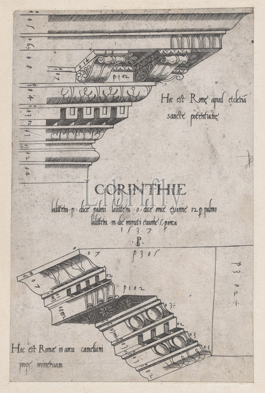 Speculum Romanae Magnificentiae, Entablatures, Santa Pudenziana, Arch, Camigliano, 1537, Engraving, sheet, 7 1/2 x 4 15/16, 19 12.5 cm, Prints, Master PS, Italian or French, active, 1530s