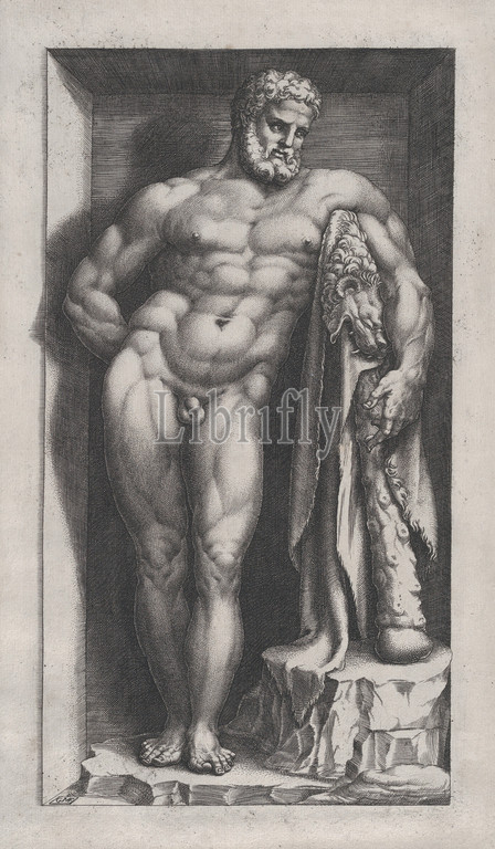 Speculum Romanae Magnificentiae, Farnese Hercules, 16th century, Engraving, sheet, 14 1/8 x 8 7/16, 35.9 21.5 cm, Prints, Giorgio Ghisi, Italian, Mantua ca., 1520–1582, Mantua