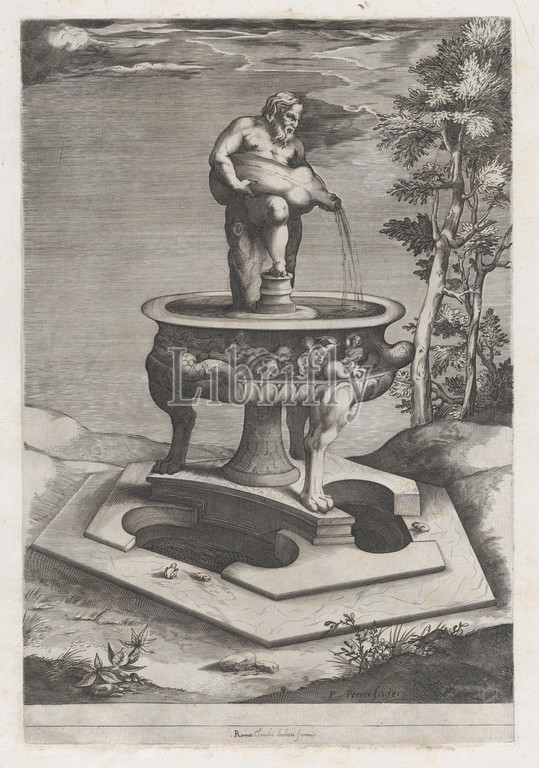 Speculum Romanae Magnificentiae, Fountain, Basin, 1581, Engraving, etching, sheet, 17 1/2 x 13, 44.5 33 cm, Prints, Pieter Perret, Netherlandish, 1555–1639