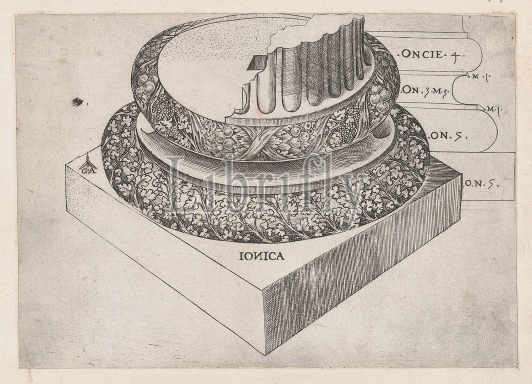 Speculum Romanae Magnificentiae, Ionic base, ca, 1537, Engraving, mount, 8 1/4 x 8 1/4, 21 21 cm, Prints, Master G.A., Italian, active ca., 1535