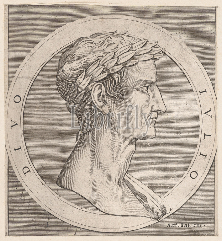 Speculum Romanae Magnificentiae, Julius Caesar, Twelve Caesars, ca, 1500–1534, Engraving, third state, three, mount, 11 x 16 3/4, 28 42.6 cm, Prints, After Marcantonio Raimondi, Italian, Argini, ca., 1480–before, 1534, Bologna