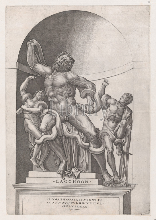 Speculum Romanae Magnificentiae, Laocoon, 16th century, Engraving, second state, two, Robert-Dumesnil, sheet, 17 1/2 x 12 3/16, 44.5 31 cm, Prints, Nicolas Beatrizet, French, Lunéville, 1515–ca., 1566, Rome