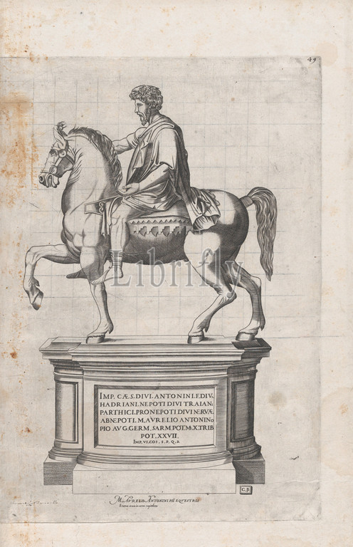 Speculum Romanae Magnificentiae: Marcus Aurelius, 16th century, Engraving, sheet: 18 5/16 x 11 in. (46.5 x 28 cm), Prints, Attributed to Cornelis Bos (Netherlandish, Hertogenbosch ca. 1510?–before 1566 Groningen), After Nicolas Beatrizet (French, Lunéville 1515–ca. 1566 Rome (?)), After Marco Dente (Italian, Ravenna, active by 1515–died 1527 Rome)