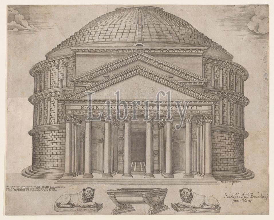 Speculum Romanae Magnificentiae, Pantheon, 16th century, Engraving, copy, second state, three, Robert-Dumesnil, sheet, 13 11/16 x 17 3/16, 34.7 43.6 cm, Prints, Anonymous, After Nicolas Beatrizet, French, Lunéville, 1515–ca., 1566, Rome