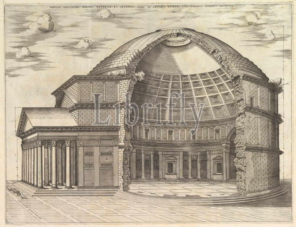 Speculum Romanae Magnificentiae, Pantheon, broken away, interior, 1553, Engraving, sheet, 18 1/8 x 22 1/16, 46 56 cm, Prints, Anonymous