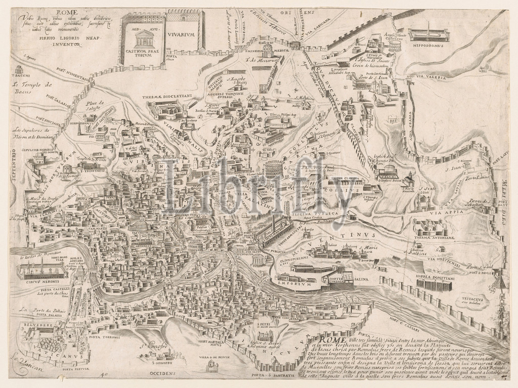 Speculum Romanae Magnificentiae: Plan of Ancient Rome, 16th century, Engraving, sheet: 15 9/16 x 21 1/16 in. (39.5 x 53.5 cm), Prints, Pirro Ligorio (Italian, Naples ca. 1512/13–1583 Ferrara)