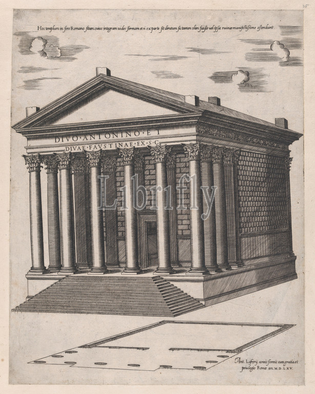 Speculum Romanae Magnificentiae, Temple, Antoninus, Faustina, 1565, Engraving, sheet, 16 1/8 x 12 5/8, 41 32 cm, Prints, Anonymous