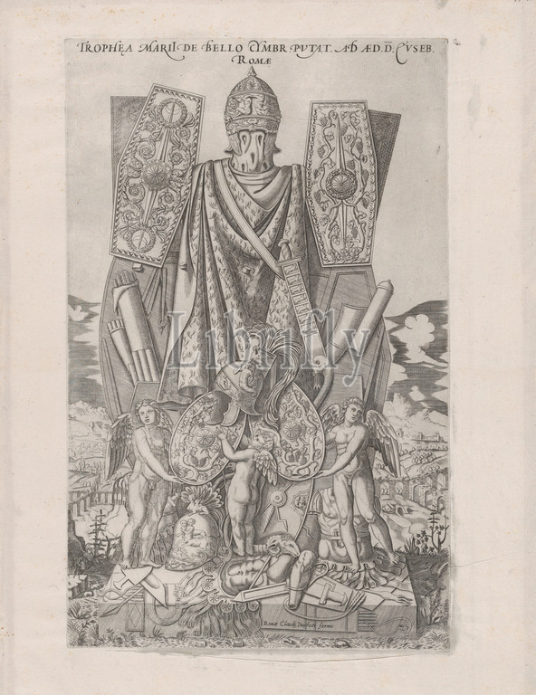 Speculum Romanae Magnificentiae, Trophies, Marius, late 16th century, Engraving, etching, sheet, 18 7/8 x 13 3/16, 48 33.5 cm, Prints, Anonymous