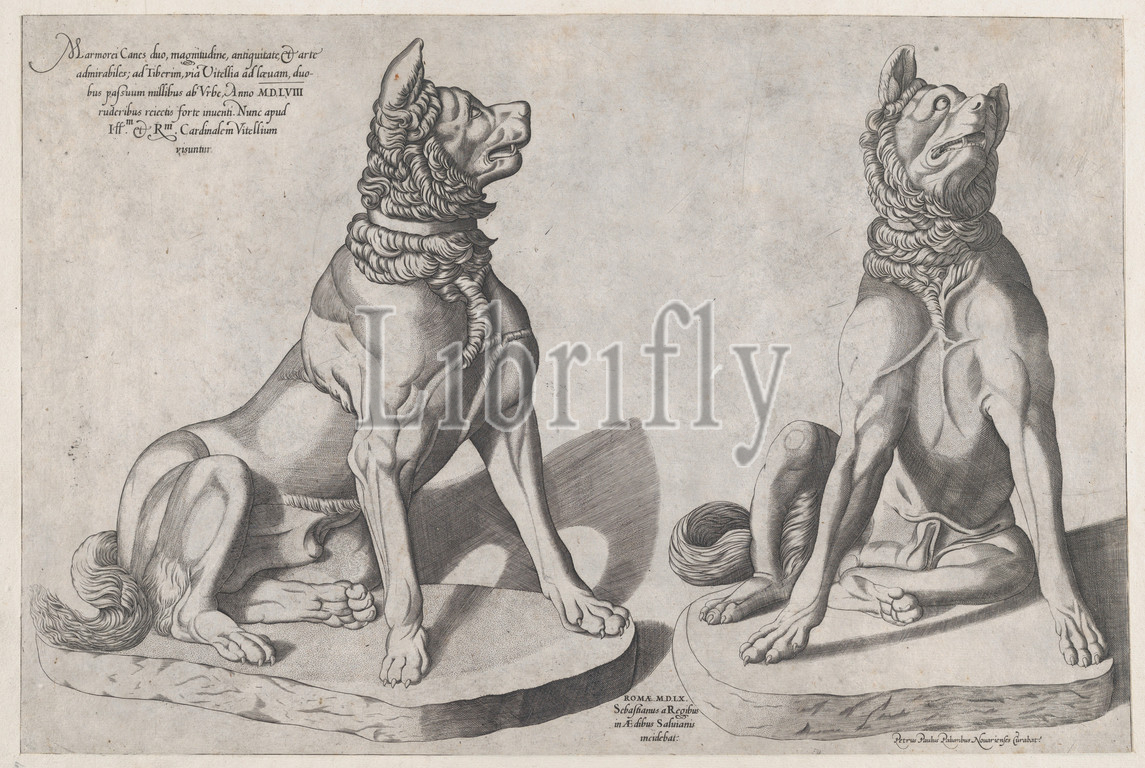 Speculum Romanae Magnificentiae, Two Dogs, 1558, Engraving, sheet, 13 x 19 7/16, 33 49.4 cm, Prints, Sebastiano di Re, Italian, active Rome, 1557–63