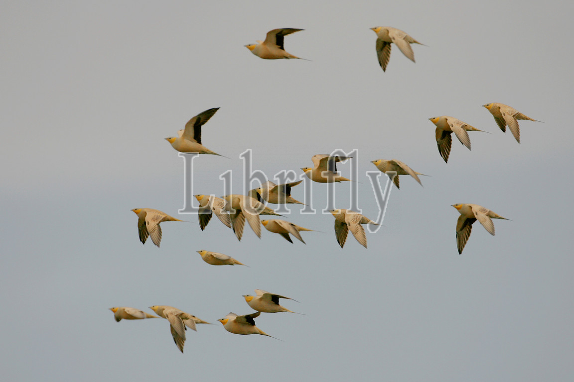 Spotted Sandgrouse, flight, Pterocles senegallus, Egypt, nature, bird, animal, wildlife, wild, fauna, natural, feather, sky, beak, wing, outdoor, freedom, colourful, Liszt, Natural History, ornithology, vertebrate animals, photography, color image