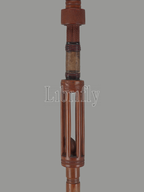 staff for Sande association, Mende people, 20th century, wood, pigment, metal, leather, 65-9/16 x 2-3/4 x 4-1/4 in., African Art
