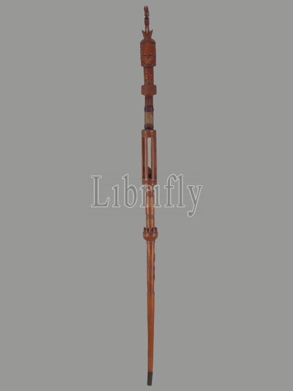 staff for Sande association, Mende people, 20th century, wood, pigment, metal, leather, 65-9/16 x 2-3/4 x 4-1/4 in., African Art