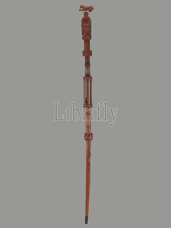 staff for Sande association, Mende people, 20th century, wood, pigment, metal, leather, 65-9/16 x 2-3/4 x 4-1/4 in., African Art