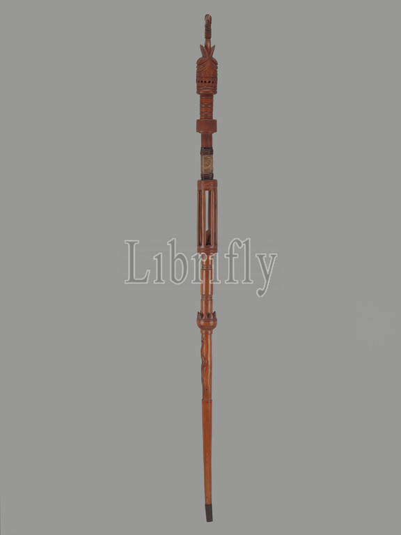 staff for Sande association, Mende people, 20th century, wood, pigment, metal, leather, 65-9/16 x 2-3/4 x 4-1/4 in., African Art