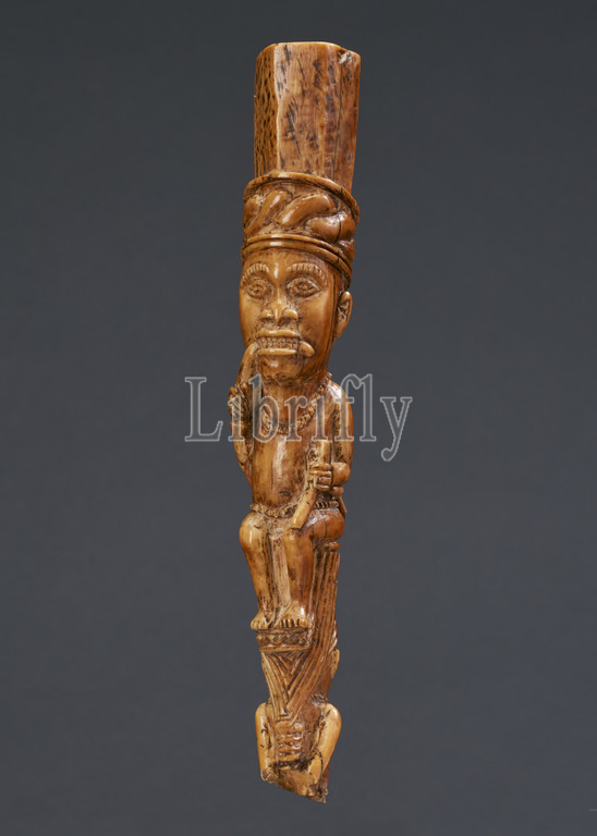 staff with seated leader, Master of Kasamvu (African), early 20th century, ivory, 7-5/8 x 1-1/4 x 1-1/2 in., African Art