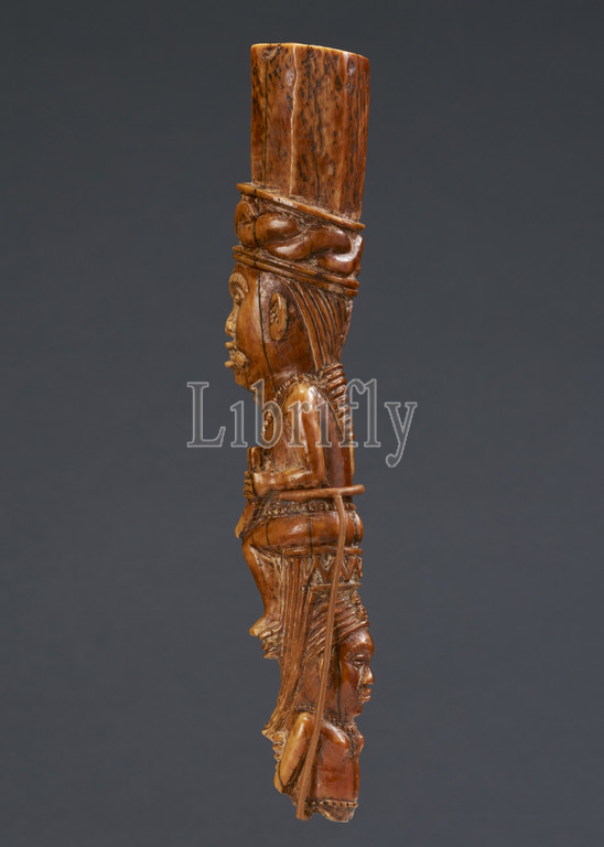 staff with seated leader, Master of Kasamvu (African), early 20th century, ivory, 7-5/8 x 1-1/4 x 1-1/2 in., African Art