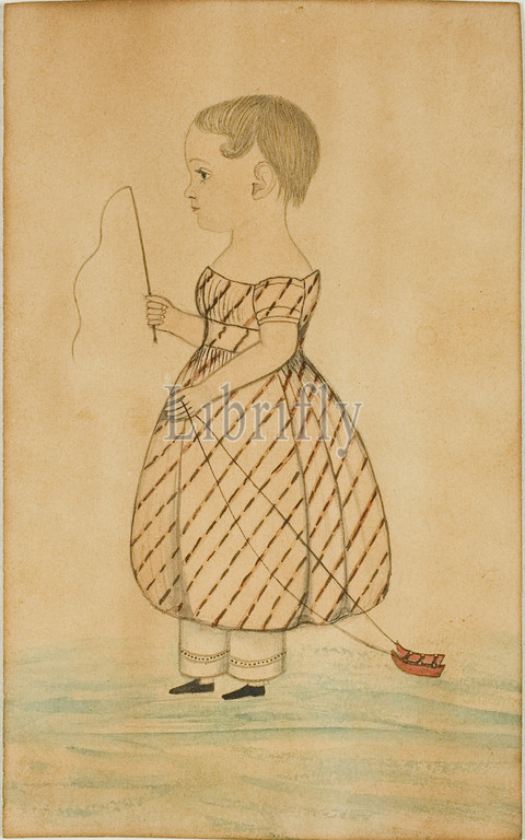 Standing Girl, Profile, Left, Whip, Toy Sleigh, n.d., Unknown Artist, American, English, 19th century, United States, Graphite, pen, black ink, watercolor, cream wove paper, discolored, 121