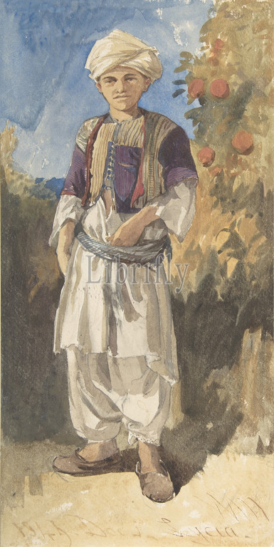 Standing Turkish Youth, 1844, Watercolor, graphite, sheet, 13 11/16 x 6 7/8, 34.8 17.5 cm, Drawings, William James Müller, British, Bristol, 1812–1845