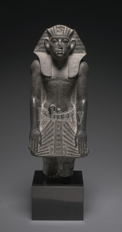 Statue of Amenemhat III, c. 1859-1814 BC. Egypt, Middle Kingdom, Dynasty 12 (1980-1801), reign of Amenemhat III. Granodiorite; overall: 51.2 x 19.8 x 18.4 cm (20 3/16 x 7 13/16 x 7 1/4 in.).