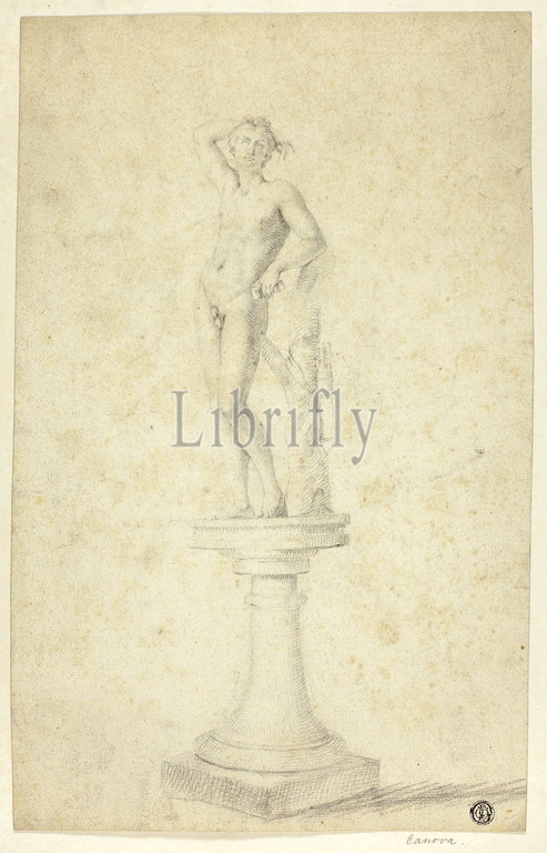 Statue of Apollo, n.d., Unknown Artist, French, 18th century, France, Black chalk on cream laid paper, tipped onto cream wove paper, 340 × 215 mm