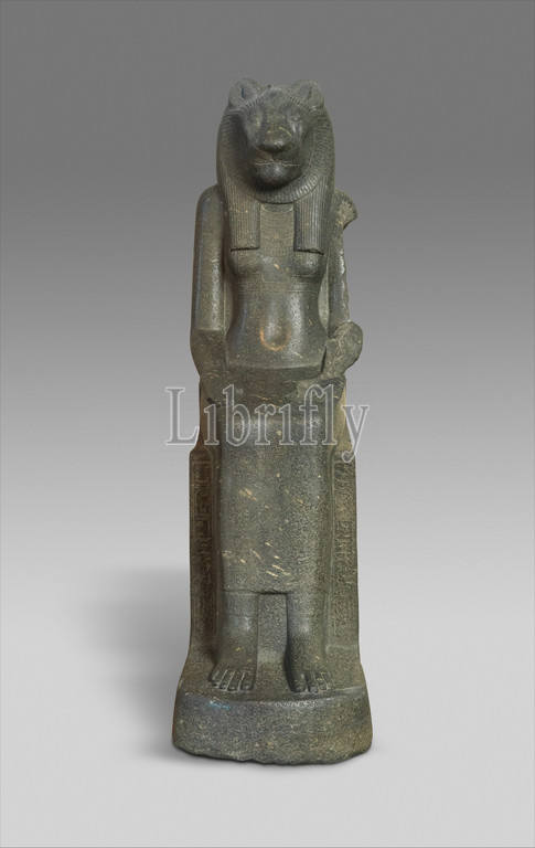 Statue, Goddess Sakhmet, New Kingdom, Dynasty 18, ca, 1390–1352 B.C, Egypt, Upper Egypt, Thebes, Karnak, Granodiorite, H, 176 cm, 69 5/16, w, 45.7, 18, d, 94, 37, lion-headed, figure, represents, goddess, name means, powerful, Sakhmet, goddess, war, violent storms, pestilence, appeased, powers, destruction, protect, aspect, healing