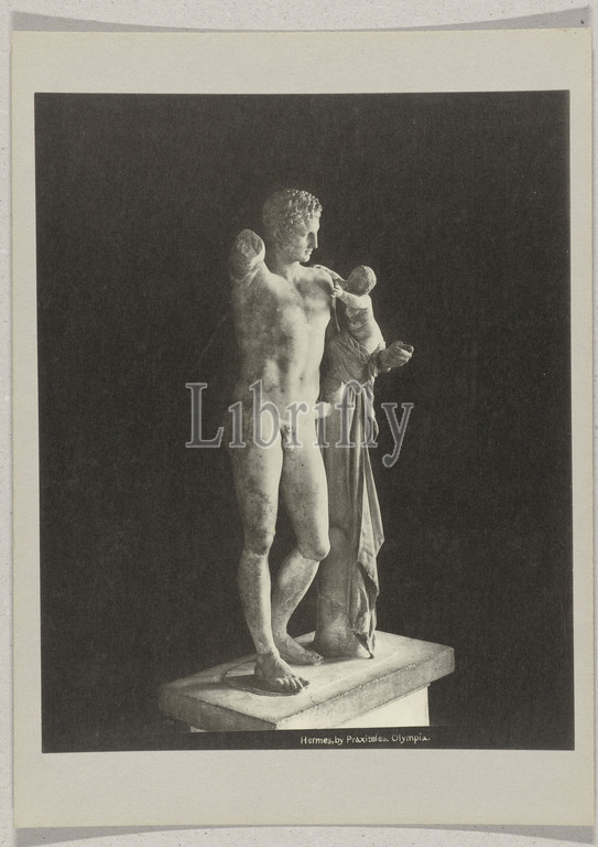 Statue, Hermes carrying Dionysos, small child, Hermes, Praxiteles, Olympia, Image, Praxiteles, anonymous, Pelopónnesos, c, 1895, c, 1915, paper, cardboard, collotype, height 271 mm, width 220 mm, height 328 mm, width 239 mm