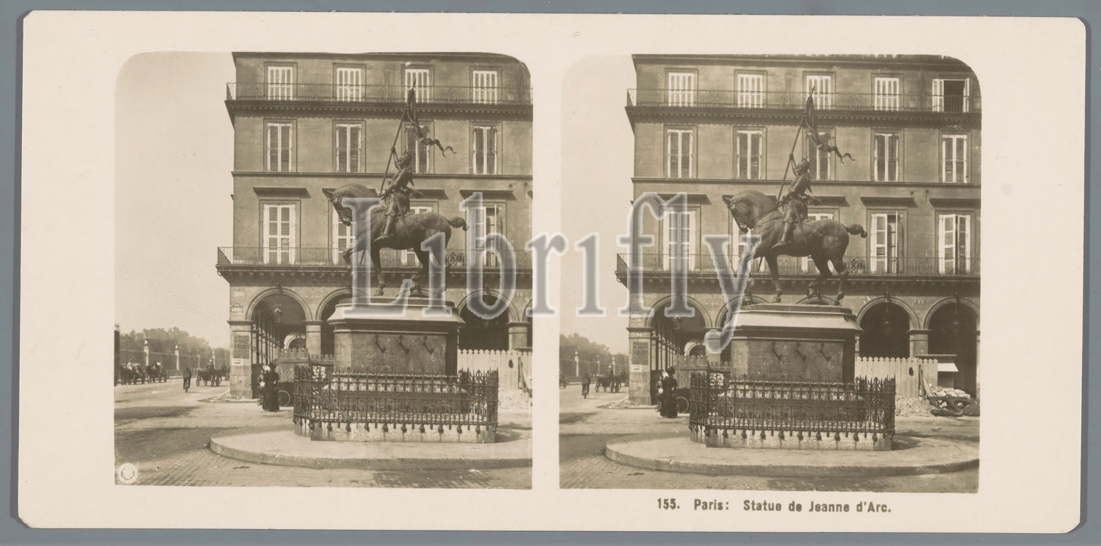 Statue, Joan, Arc, Place des Pyramides, Paris Paris, Arc statue, title, object, monument, statue, square, place, circus, etc, Jeanne d'Arc, possible attributes, armor, banner, lance, sword, Neue Photographische Gesellschaft, mentioned, Paris, 1895, c, 1905, cardboard, photographic paper, gelatin black-and-white print