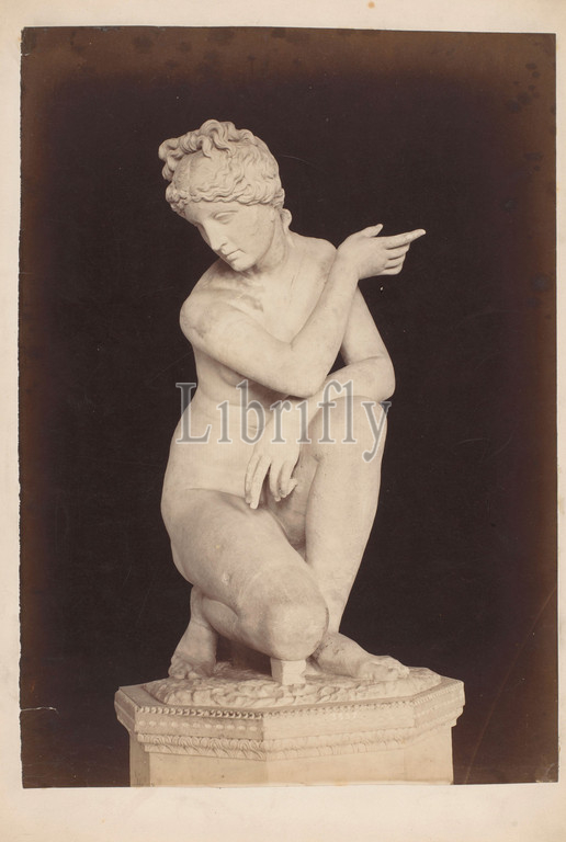 Statue, kneeling Venus, Vatican Museums, Vatican City, anonymous, Vaticaanse Musea, c, 1875, c, 1900, cardboard, albumen print, height 398 mm, width 281 mm