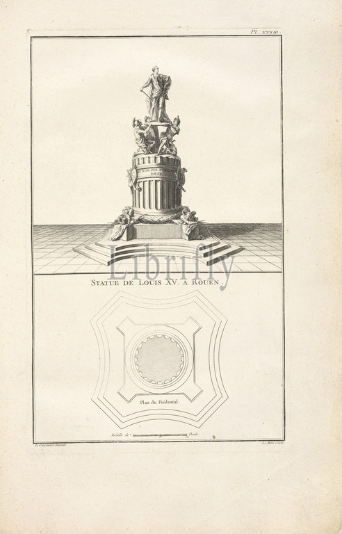 Statue de Louis XV. a Rouen, Monumens érigés en France a la gloire de Louix XV, Le Carpentier, Antoine Mathieu, 1709-1773, Le Mire, Noël, 1724-1801, Engraving, 1765