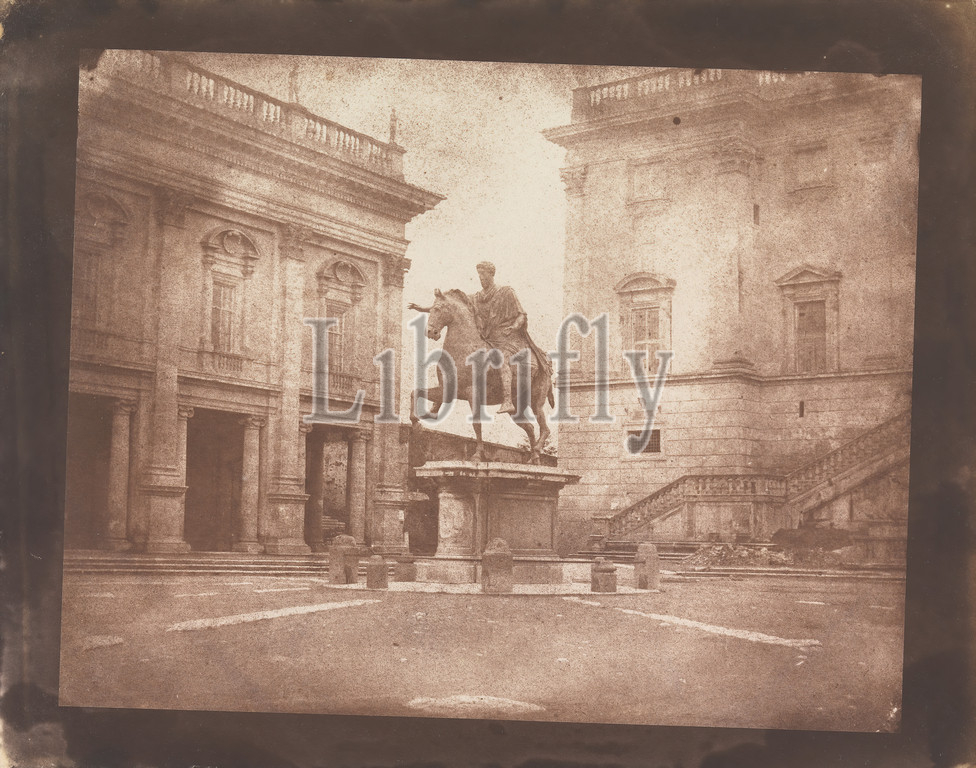Statue of Marcus Aurelius, Capitoline, Rome, Calvert Richard Jones, 1802–1877, British, 1846, Salted paper print from a paper negative on thin, smooth, cream wove paper, Sheet: 7 3/4 × 9 3/4 inches (19.7 × 24.8 cm)