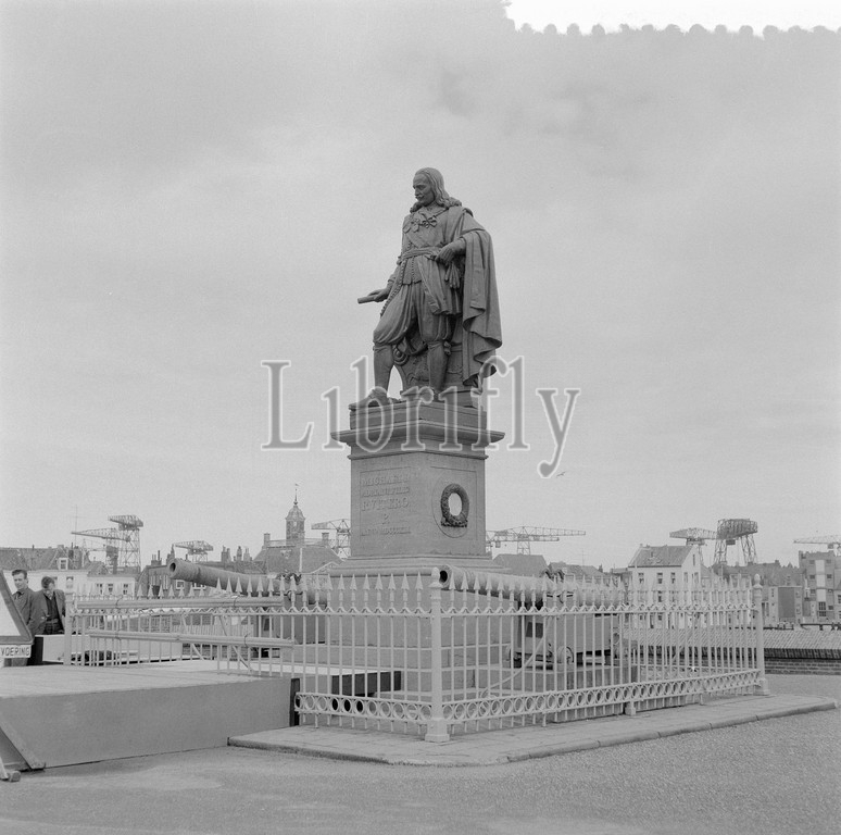 Statue of Michiel de Ruyter in Vlissingen, March 25, 1957, statues, The Netherlands, 20th century press agency photo, news to remember, documentary, historic photography 1945-1990, visual stories, human history of the Twentieth Century, capturing moments in time