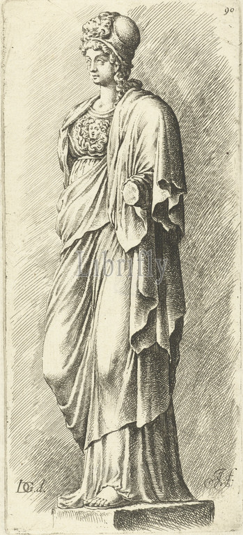 Statue of Minerva without forearm, Jan de Bisschop, after anonymous, after Jacob de Gheyn (III), c. 1664 - in or after 1669, print maker: Jan de Bisschop, (mentioned on object), anonymous, intermediary draughtsman: Jacob de Gheyn (III), (mentioned on object), Northern Netherlands, c. 1664 - in or after 1669, paper, etching, h 221 mm × w 98 mm