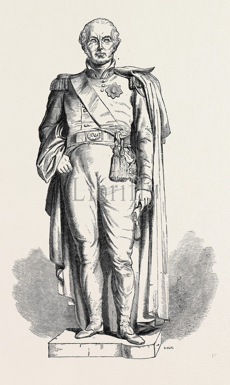 sculpture, monument, statue, sir, charles, metcalfe., baily, r.a., 1844 engraving, engraved image, history, illustrative technique, engravement, victorian, arts, culture, retro styled, vintage, retro, arkheia