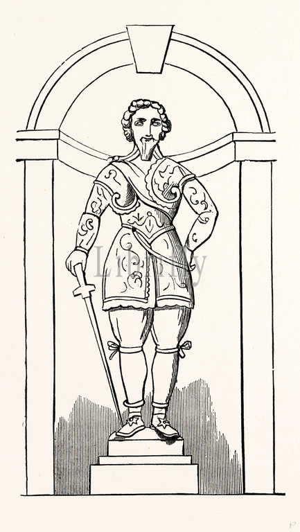 Statue Sir Richard Leveson Courtyard Trentham, UK, England, engraving 1870s, Britain